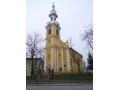 Acest edificiu compus dintr-o singura nava si o absida semicirculara a fost construit conform traditiei pe ruinele unei biserici medievale distrusa de catre turci. Recentele cercetari arheologice au confirmat aceasta ipoteza identificand sub pardoseala actuala a bisericii mai multe faze de constructie databile intre sec. XIV–XVI. Biserica si-a castigat forma actuala in urma unor modificari si adaugiri efectuate in jurul anului 1750 de catre episcopul Csáky Miklós (prelungirea navei si turnul vestic), respectiv de catre cardinalul Schlauch Lõrinc in 1896 (refacerea absidei, renovarea in stil eclectic a fatadelor si decorarea interioara). Picturile murale din nava si absida bisericii sunt opere ale renumitului pictor ecleziastic, Storno Ferenc. Sursa: Wikipedia
