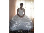 alta rochie tot crem este compus din corset ajustabilsi are bretele din voal si fusta are aplicatii droderie si are si cerc.