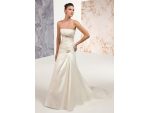 Best Bride va ofera spre vanzare modelul Consuelo, o rochie deosebita si plina de eleganta de la Alyce Designs. Croiala acesteia este din satin, corsetul asimetric se prelungeste urmand linia corpului, iar sub bust se gasesc aplicatii de paiete si cristale. Fusta este simpla si se continua cu trena