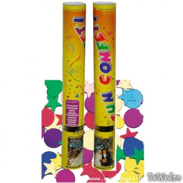 Confetti atat pentru decorarea mesei (nunti, botezuri, aniversari, sarbatori) cu diferite tematici cat si tunuri de confetti pentru interior sau exterior.
