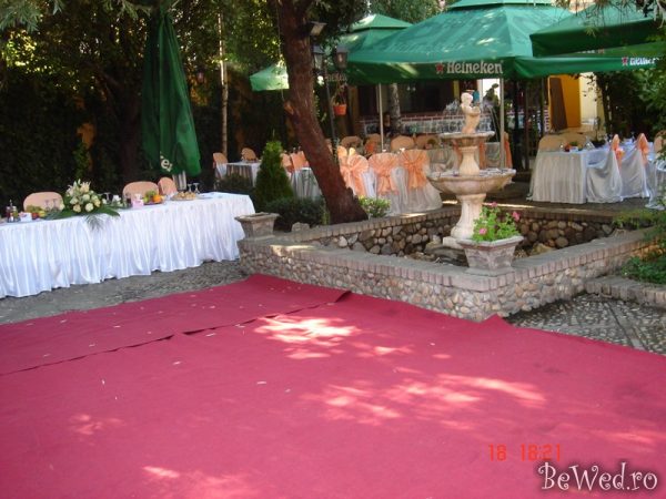 Gradina este deosebita, eleganta si intretinuta cu grija, are posibilitatea unei amenajari potrivite evenimentului atat in zona destinata ceremonialului cat si in zona destinata invitatilor.