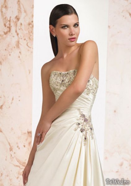 Best Bride va ofera spre inchirere si vanzare modelul Cayleight, realizata din satin. Corsetul are aplicatii de broderie si cristale, iar fusta prevazuta cu pliuri asimetrice si trena va vor da eleganta de care aveti nevoie.