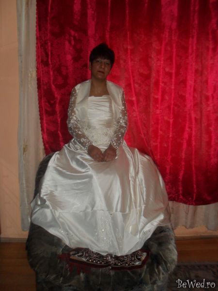 O rochie este culoare crem marime 36, rochia este intreaga are aplicatii broderie, are cerc si voal.