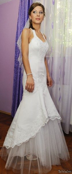 Rochie de mireasa, model sirena, pret real 1300 ron, stare impecabila, culoare alba, marime 36-44
