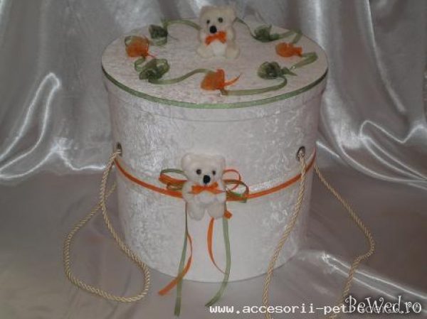 Un trusou deosebit pentru botezul celui mic. Trusoul este lucrat si decorat manul iar culoarea diferitelor accesorii se poate alege in functie de preferinte. La cerere se pot accesoriza conform unei tematici alese sau se poate personaliza cu numele bebelusui.