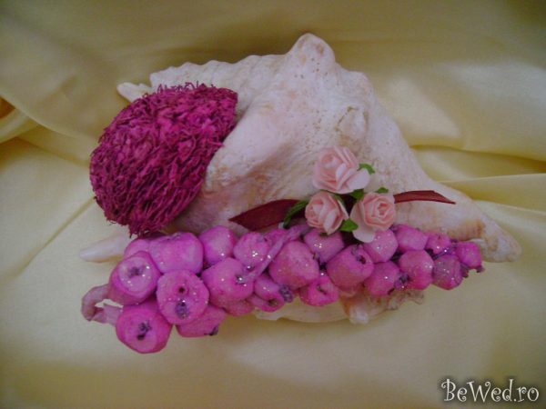 Detalii: Decor pe suport scoica cu fundita si flori parfumate
