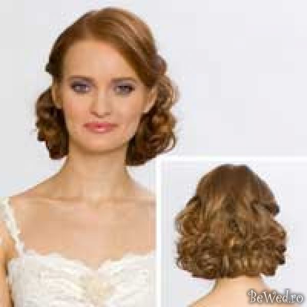 Retro - Pentru miresele cu parul mediu, aceasta coafura in stilul anilor 40 poate reprezenta o alegere foarte buna. Cararea intr-o parte si buclele lejere nu numai ca iti vor oferi comoditate, dar vei arata si foarte chic. Suvitele laterale pot fi stranse cu niste ace de par sau pot fi lasate libere, in functie de preferintele fiecareia. Un look clasic si fresh care te va face sa te simti foarte bine.