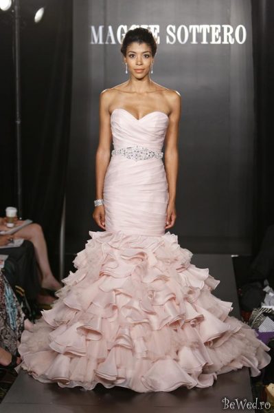 O astfel de aparitie nu va trece neobservata! In sezonul primavara-vara 2013 au revenit in forta broderiile cu margele sau perle si dantela. Unii designeri combina intr-un maniera feminina si sofisticata culoarea cu broderiile sau dantele, rezultatul fiind unul spectaculos. Avantajul de a purta o rochie colorata este acela ca elementul de rezistenta al tinutei miresei este rochia, pe plan second trecand accesoriile, machiajul si coafura. Purtand o astfel de rochie veti fi speciala, coafura si machiajul, oricat de simple ar fi, nu vor face decat sa completeze imaginea desavarsita pe care o veti avea. Accesoriile pot fi discrete sau pot lipsi mai ales daca rochia are broderii pretioase sau dantela. Galeria de imagini, pe care v-am pregatit-o, speram sa va inspire in alegerea unei rochii superbe in care sa straluciti!